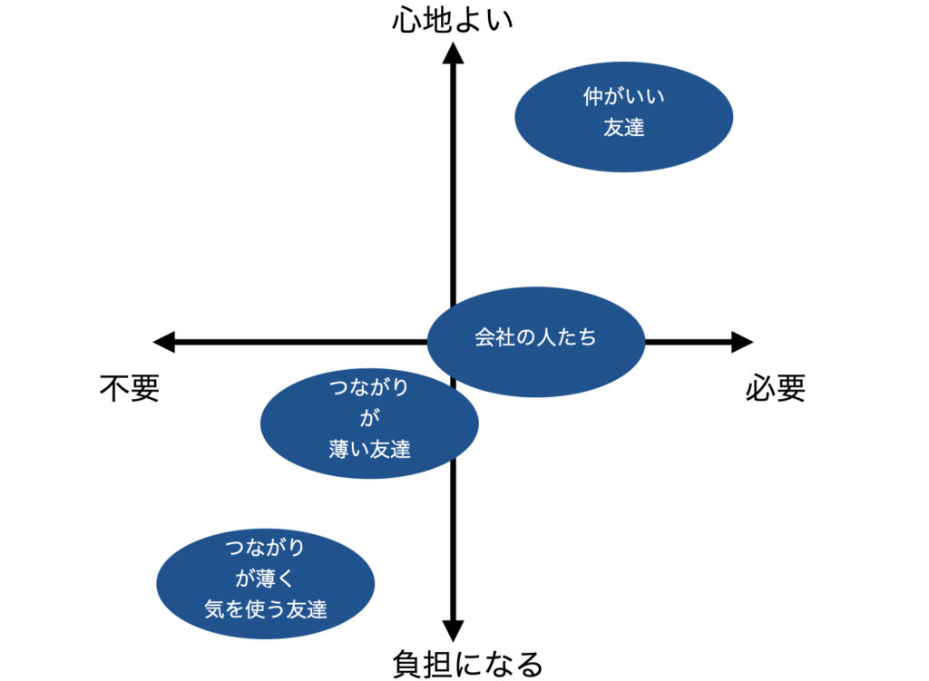 断捨離と同じ要領で、人間関係の「必要/不要」「心地よい/負担になる」を考えます。