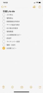 転居に伴う諸々のやることをiPhoneのメモで管理しています。