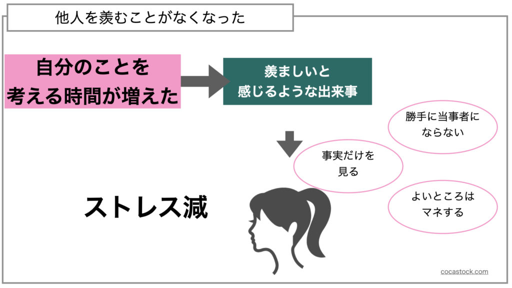 今は誰かの成功を見て、ストレスを感じることはなくなりました。