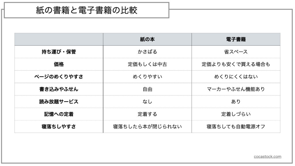 紙の書籍と電子書籍を比較